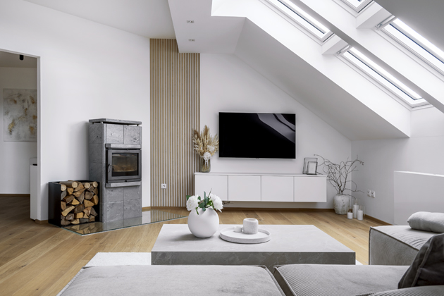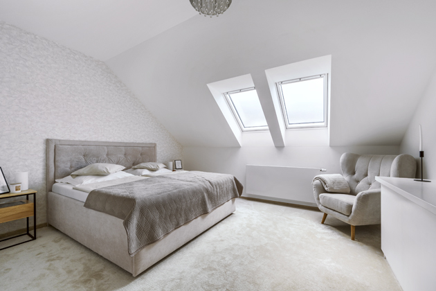 Podkrovní interiéry mají své kouzlo, ale i specifika. Byly pro vás zkosené stěny výzvou a inspirací?