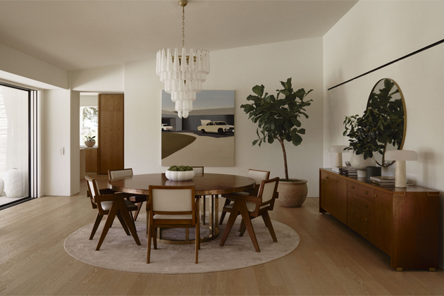Jídelna je postavena kolem kulatého vintage stolu. „Ráda do zařízení zařazuji některé vintage kousky, myslím, že dodávají domu charakter. Chtěli jsme velký stůl a tento jsem našla v jednom vintage obchodě v Lisabonu,“ říká Delia. Kombinace vintage a moderního stylu charakterizuje celý interiérový design domu v Algarve.