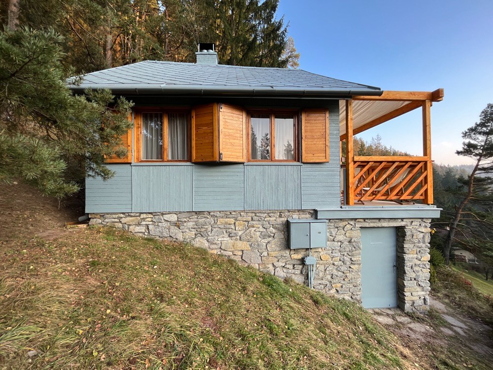 Typová chata ze 70. let na prudce jižně orientovaném pozemku s krásnými výhledy do údolí. Chata bez příjezdové cesty, daleko od hluků civilizace. V interiéru stavby proběhly v minulosti změny dispozice, které však užitnou hodnotu spíše snížily.