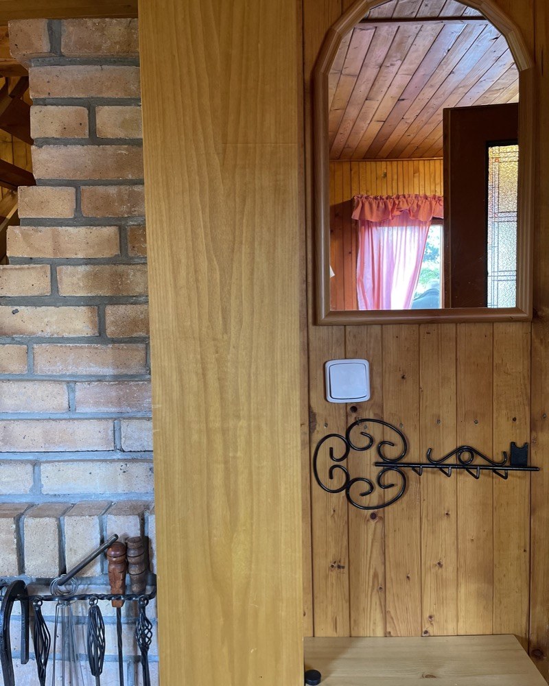 Cílem proměny byla hlavně změna dispozice tak, aby majitelům přinesla víc prostoru. Původně byly kuchyň i koupelna ve stísněných podmínkách, nevyhovovaly současným požadavkům. Nově nabízí komfort a pohodlí pro celou rodinu. Snažili jsme se zachovat co nejvíce z atmosféry 70. let, která interiérem prostupovala. Proto zelená kuchyň. Před půl stoletím měly linky smaltovaná plechová dvířka v pastelových barvách – bledě modré, levandulové či právě světle zelené. Okno nad pracovní deskou vede na terasu, čímž došlo k těsnému propojení. Dále došlo ke sjednocení všech exteriérových prvků do jednotné barvy, čímž bylo abstrahováno původní řešení. Upravili jsme výplně zábradlí pomoci prvků vycházejících z dochovaných svítidel z Kamenického Šenova s důrazem na zachování atmosféry doby vzniku chaty.