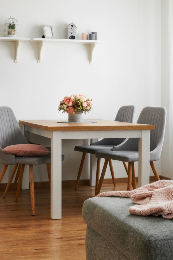 V kuchyni se pak natřely a napatinovaly dvířka a vyměnily úchytky. Stěny se vymalovaly béžovou barvou v kombinaci s bílou.