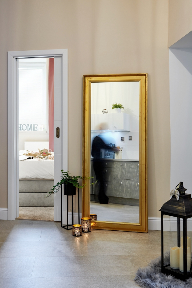 Tím vznikl nový prostor pro ložnici a zároveň i šatna, která je součástí ložnice. Manželé tentokrát nechali designérce volnou ruku. Styl zůstal stejný jako v obývacím pokoji, tzn. skandinávský, s prvky vintage stylu. Po vytvoření a odsouhlasení mood boardu se začalo s pracemi. Stejně jako v obývacím pokoji, tak i v ložnici se dělala nová elektřina, topení a podlahy. Příčka se vytvořila ze sádrokartonu.