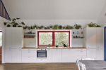 Dům má dispozici 5+kk se dvěma koupelnami, odpočinkovou zónou ve zvýšeném patře a půdou. V přízemí jsou dvě podstavy, z nichž jedna slouží jako vstupní hala se schodištěm a šatnou, ve druhé je pracovna a sklad. V přízemí také najdete krytý průchod mezi oběma podstavami, kam majitelé v letních měsících situují příjemné stinné posezení.