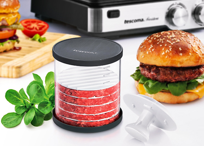 Multifunkční lis GrandCHEF (Tescoma) na lisování a uchovávání masa na hamburgery, cena 379 Kč, www.tescoma.cz
