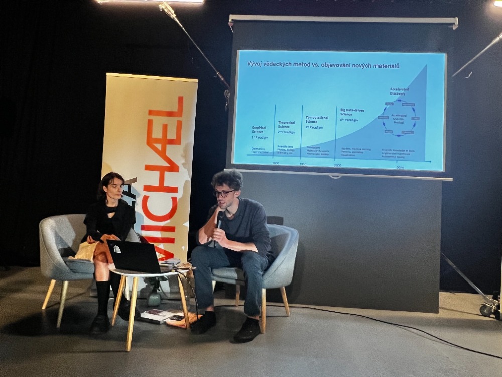 Prvním přednášejícím byl Adam Havel a Sára Drobíková z MatériO Prague, což je knihovna materiálů, kde každý designér může najít inspiraci a materiály pro svou tvorbu. MatériO zároveň šíří osvětu o udržitelnosti při navrhování nových produktů, což bylo hlavním tématem přednášky. Návštěvníkům byly představeny nové moderní materiály a značky, které se aktivně zaměřují na design s ohledem na udržitelnost.