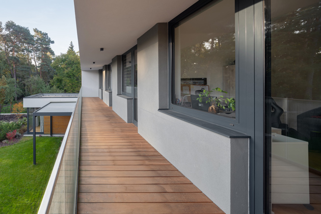 - Okna, balkonové sestavy, HS portál SLIM, vchodové dveře (vše v hliníkovém provedení): VEKRA