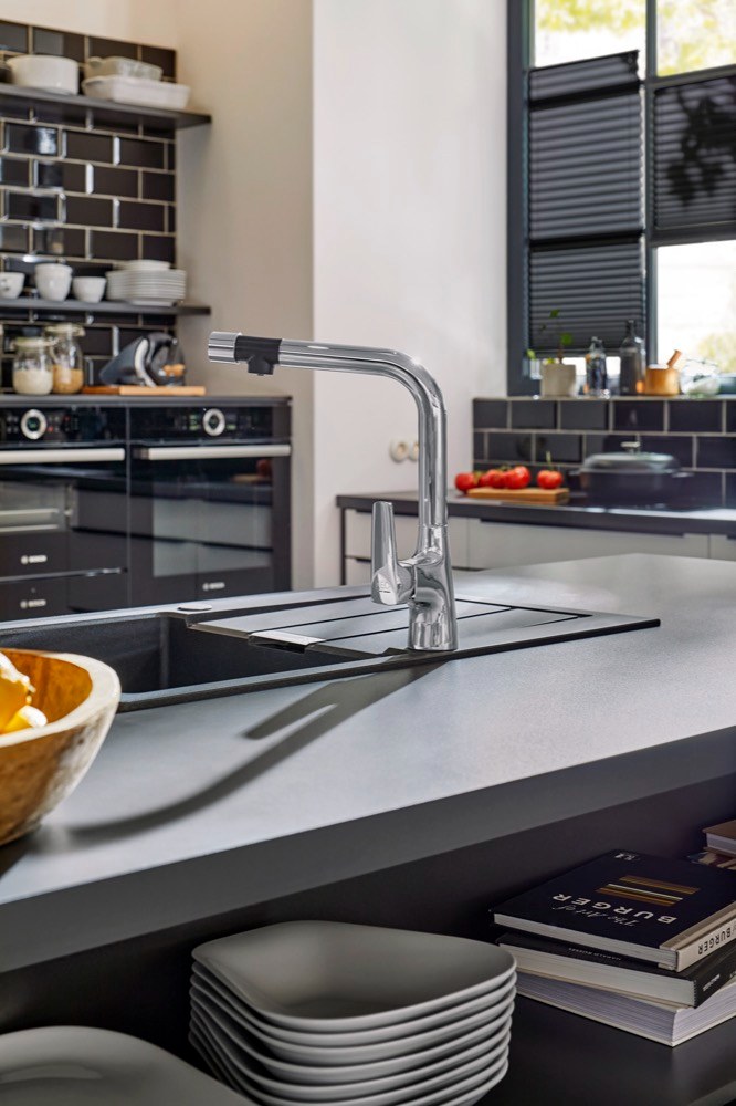 Moderní kuchyň je často propojena s obývacím pokojem, a tak je důležité, aby jednotlivé kuchyňské prvky byly nejen praktické, ale i krásné. To platí také pro dřezovou baterii, kterou v kuchyni nelze vynechat. Jednoznačným trendem jsou vysoké stojánkové baterie. Co se týká provedení, nejoblíbenější jsou chromové a černé baterie, které se prostě hodí ke všemu. Velkou výhodou je také otočné raménko a vytahovací sprška, díky které pohodlně umyjete třeba i velké hrnce. A v neposlední řadě doporučujeme zajímat se také o spotřebu vody. Vhodná je například tzv. ekokartuše, omezující spotřebu vody. Vodu uspoří i baterie s perlátorem, který ji mísí se vzduchem, a díky tomu jí kohoutkem proteče méně.