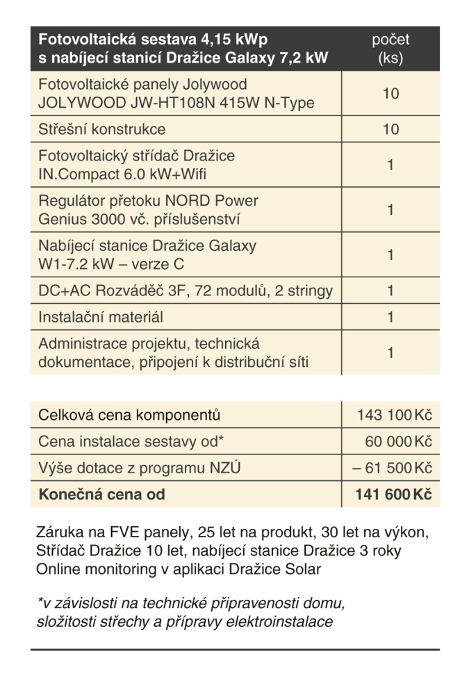 Instalace fotovoltaické elektrárny by měla představovat spolehlivou investici na co možná nejdelší období. Proto fotovoltaická řešení DZD SOLAR využívají výhradně špičkové komponenty od předních světových výrobců. Fotovoltaika DZD SOLAR je optimalizována pro zaručenou kompatibilitu s produkty Dražice a NIBE a jejich bezproblémovou instalaci. Navíc díky dotaci v programu Nová zelená úsporám můžete nyní realizovat mimořádně výhodnou investici do budoucnosti. Není na co čekat!