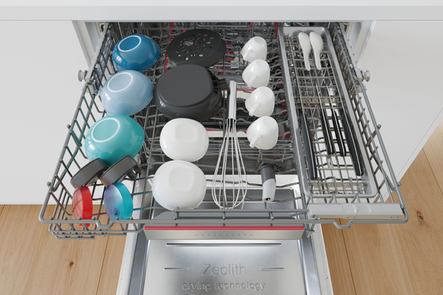 Vyplatí se sledovat energetické štítky na spotřebičích a vybírat co nejúspornější modely (energetická třída A – na stupnici tříd energetické účinnosti od A do G). Některé moderní spotřebiče navíc nabízejí technologie, díky kterým ušetří ještě více energie. Například myčky Bosch využívají vlastností přírodního minerálu Zeolith, který přeměňuje vlhkost na teplo. Díky tomu dochází k úspornému a perfektnímu sušení skla, porcelánu a dokonce i plastového nádobí s o 20 % nižší spotřebou energie.2