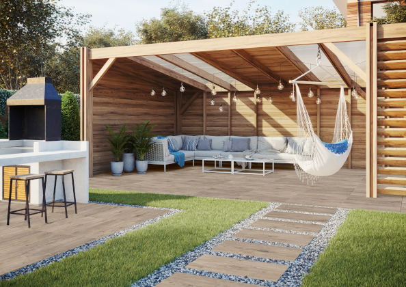 Kompozitní dlažba je nejoblíbenější volbou posledních let. Jde o moderní a zároveň ekologickou možnost, protože se vyrábí z recyklovaného dřeva a plastu, které se smíchají a vytvarují do prken. Tento typ podlahy je navržen tak, aby odolával veškerým povětrnostním podmínkám a zůstal tvarově stabilní. Pokud máte v zahradě místo k sezení, dřevoplast je ideální. WPC je příjemný pro chůzi na boso, protiskluzový a velmi snadno se udržuje. I díky tomu je oblíben v okolí bazénů.
