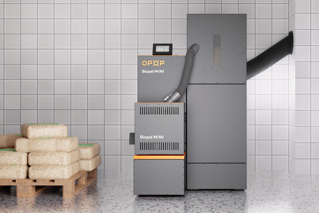 Moderní kombinovaný kotel Biopel Mini (opop) na pelety a dřevo v sobě snoubí manuální přikládání paliva s pohodlným automatickým provozem, www.opop.cz