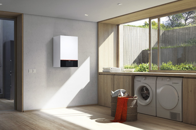 Plynový kondenzační kotel Vitodens 200 (Viessmann), jehož srdcem je hořák MatriX-Plus. Pyšní se nízkými emisemi škodlivin i hluku. Pokročilá řada je vybavena wi-fi rozhraním a lze ji ovládat pomocí aplikace, www.viessmann.cz
