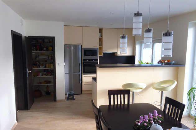 V rodinném domě je instalováno elektrické podlahové vytápění s topnými kabely Ecofloor ADPSV o celkovém příkonu 9,6 kW. Kabely byly k tepelné izolaci fixovány do plastových T-lišt, umožňujících snadnou instalaci topných okruhů, a poté byly zality betonovou mazaninou. Na podlahu uživatelé zvolili keramickou dlažbu a lepené vinylové krytiny.