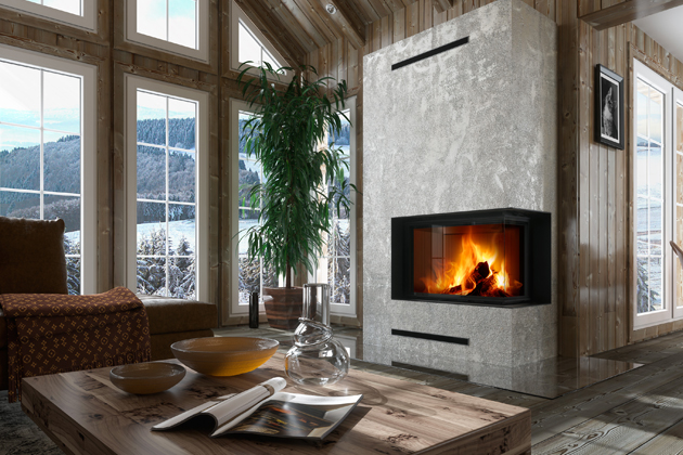 Rohové krbové vložky Impression (Romotop) s otevíráním dvířek do strany jsou navrženy do posledního detailu tak, aby každodenní topení bylo příjemným zážitkem, www.romotop.cz