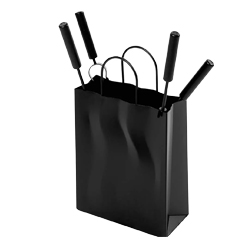 Krbová souprava „bag“ ve tvaru tašky obsahuje smeták, lopatku, pohrabáč a kleště, cena 3 025 Kč, www.vybaveniprouklid.cz