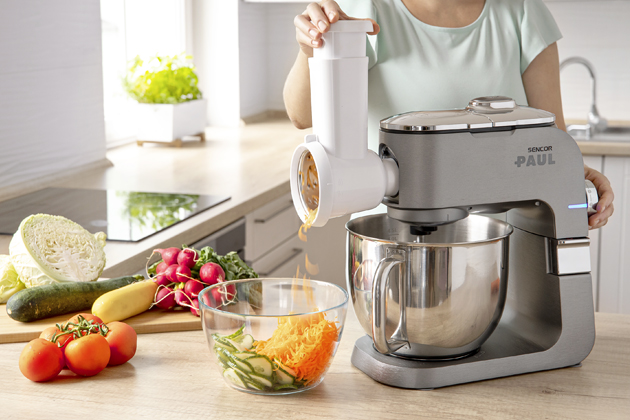 Kuchyňský robot Poul 1 (Sencor), sada kráječů a další nástavce, mixér, cena 9 999 Kč, www.sencor.cz