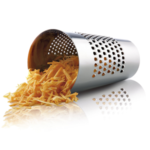 Kónické struhadlo (Eva Solo), těsný spodní okraj pro udržení šťávy, tři typy otvorů, cena 1 250 Kč, www.kulina.cz