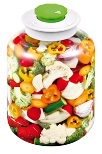 Souprava na kvašení zeleniny Della Casa (Tescoma), sklo, silikon a plast, objem 5 l, cena 669 Kč, www.tescoma.cz