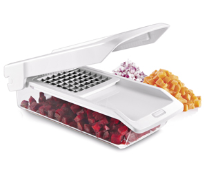 Kráječ na kostičky a hranolky Handy (Tescoma), dvě čepele, zásobník, snadné rozkládání, cena 829 Kč, www.tescoma.cz
