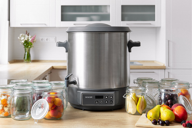 Digitální zavařovací hrnec SPP 3200SS (Sencor), kapacita až 14 sklenic, dva režimy, funkce udržování teploty, cena 2 999 Kč, www.sencor.cz