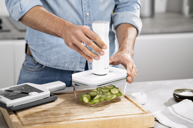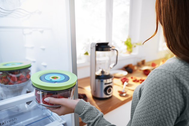 Zajímavou možnost uchovávání čerstvých surovin představuje jejich zavakuování do pevně uzavřených sáčků, fólií nebo malých boxů. Toho se docílí s pomocí mechanického nebo elektrického odsávacího zařízení. Metoda vakuování se u ovoce a zeleniny využívá hlavně na prodloužení jejich čerstvosti, k dlouhodobějšímu uchovávání je ale vhodná hlavně pro pevné a trvanlivější potraviny, jako je například tvrdý sýr nebo sušené plodiny. Nový trend využití vakua představují mixéry, ve kterých se při vysokých otáčkách mělní ovoce až po odsátí vzduchu z nádoby. Protože se do hmoty mixované ve vakuu nedostane kyslík, sníží se její oxidace, výchozí suroviny si uchovají svoji chuť, barvu i důležité živiny a vitaminy. Součástí vakuových mixérů jsou samostatné vakuovací nádoby, ve kterých je možné takto připravené směsi po určitou dobu uchovávat v chladničce.