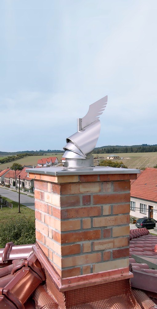 vyřešíte to pomocí lehkého nerezového třísložkového (nerez/izolace/nerez) komínového systému, který lze ukotvit jak do zdi, tak i do stropu. Aby měl komín správný tah, musí mít správně zvolený průměr vložky, minimální účinnou výšku 5 metrů od zapojení spotřebiče do komína po jeho vyústění a správnou nadstřešní výšku (pokud je komín umístěn do 2 metrů od hřebene střechy, musí být ve výšce 65 cm nad hřeben střechy).