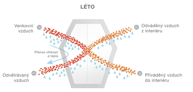 Díky rekuperaci můžete velmi účinně zpětně získávat nejen teplo, ale i chlad! „Princip toho, jak komfortní větrací jednotka Zehnder ComfoAir Q funguje, lze poměrně snadno vysvětlit na příkladu, kdy je venku 35 °C, zatímco interiér máme nachlazený na 20 °C. Otevřením okna si dovnitř sice pustíme čerstvý vzduch, ten ale bude o 15 °C teplejší. Díky řízenému větrání s rekuperací tepla a chladu však lze vyměnit vydýchaný vnitřní vzduch tím venkovním, a přitom odpadním chladnějším vzduchem snížit teplotu toho přiváděného. Ve výsledku tak do domácnosti nepustíme 35°C vzduch, ale například 22°C,“ popisuje Ing. Roman Šubrt, obchodně technický zástupce Zehnder, výrobce systémů komfortního větrání s rekuperací tepla a designových radiátorů, a dodává: „V takovém případě nám stačí, aby klimatizační soustava dochladila pouze o 2 °C, nikoliv o 15 °C. Výsledná úspora se pak rovná množství energie, jenž není potřeba vynaložit na snížení teploty v interiéru.“ I během horkých letních dní si tak doma můžete dopřát příjemně chladný a přitom čerstvý vzduch!