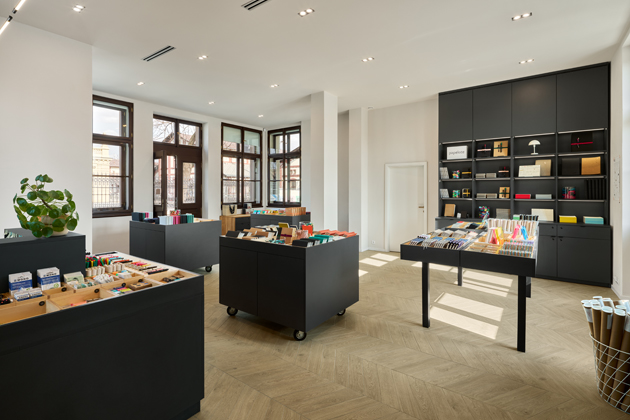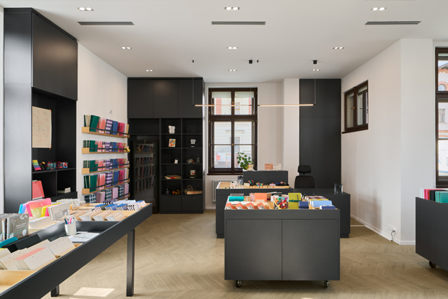 „Prostor je koncipován jako otevřená a flexibilní platforma. Pracujeme s mobilními ostrůvky, které umožňují snadno proměňovat dispozici podle aktuálních potřeb a během chvíle je lze přeskupit do podoby workshopových stolů. Interiér navazuje na principy předchozích realizací pro papelote a rozvíjí je v tomto novém kontextu," uvádí designér Václav Mlynář.
