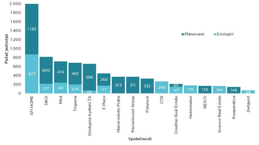 Graf 2 – Největší hráči v oblasti institucionálního nájemního bydlení v Praze