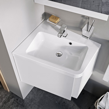 Foto: RavakUmyvadlo z řady 10o (Ravak) poskytuje díky natočení mycího prostoru větší odkládací prostor, cena 5 990 Kč, www.ravak.cz