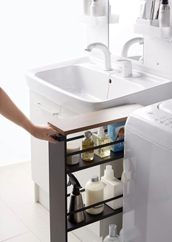 Foto: YamazakiPojízdná police Tower Slim (Yamazaki), lakovaný kov a masiv, cena 3 679 Kč, www.naoko.cz