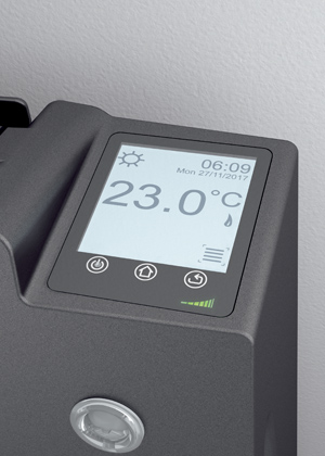 Ovšem to není vše – některé modely radiátorů navíc disponují i adaptabilní funkcí. „Jedná se o inteligentní systém, který se přizpůsobuje zvykům obyvatelů interiéru. Díky integrovanému pohybovému čidlu radiátor navíc dokáže detekovat přítomnost osob v místnosti. To v praxi znamená, že pokud se v daném prostoru nikdo nenachází, radiátor automaticky sníží teplotu – přepne se do ekonomického provozu,“ vysvětluje Ing. Váša a dodává: „Touto funkcí je vybaven například náš bytový elektrický radiátor Zehnder Fare Tech, který lze ovládat skrze inteligentní tlačítkový ovládací panel v pravé části, nebo dokonce prostřednictvím aplikace v mobilním telefonu.“ Svými funkcemi splňuje bytový radiátor Zehnder Fare Tech požadavky evropského nařízení EcoDesign, díky kterým je vysoce energeticky účinný.