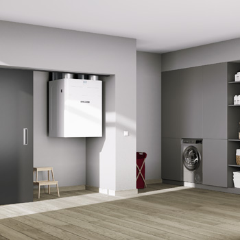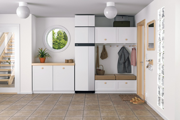 Vnitřní tepelné čerpadlo NIBE S735 (vzduch-voda) s aktivní rekuperací zajistí jak vytápění, tak ohřev vody a postará se o řízené větrání. Všechny prvky nutné pro jeho provoz se nacházejí v jediné vnitřní jednotce, kterou lze jednoduše instalovat v interiéru. Není tedy nutné řešit umístění venkovní jednotky nebo realizaci zemních vrtů či plošných kolektorů. Je ideální pro byty nebo řadové domy, kde by venkovní jednotka mohla svým hlukem rušit sousedy.