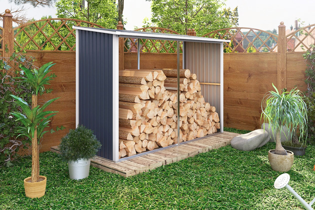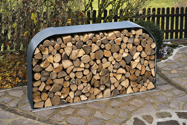 Přístřešek na dřevo Westmann z odolné pozinkované oceli, 212 × 46 × 111 cm, cena 3 225 Kč, www.hornbach.cz