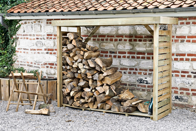 Dřevník Henry Klasik, kombinace dřevěné a zinkované konstrukce, 195 × 204 × 100 cm, cena 35 486 Kč, www.drevnikhenry.cz