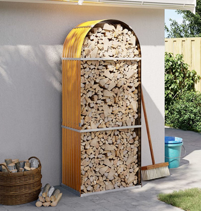 Foto: Mall.czStojan na polena Vidaxl z odolných ocelových plechů pro přehledné ukládání palivového dřeva, 80 × 45 × 190 cm, cena 1 414 Kč, www.mall.cz