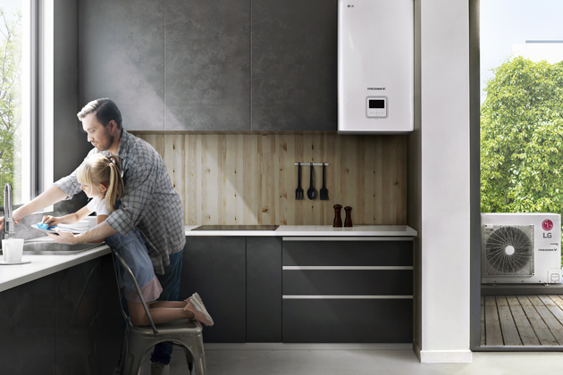 Tepelné čerpadlo vzduch-voda Therma V (LG) s topným výkonem 5–16 kW dokáže pracovat i v zimě při teplotách okolo –25 °C, www.lgtepelnacerpadla.cz