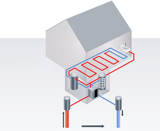 Proces funguje na principu přenosu tepla ze země pomocí kapalinového okruhu, který odvádí teplo do domu, kde ho dále využíváme pro vytápění a ohřev vody.
