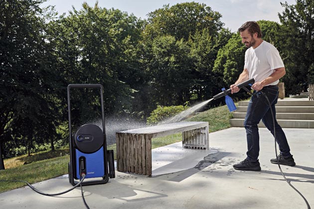 Vysokotlaký čistič CORE 140-6 PowerControl (Nilfisk), maximální tlak 140 barů, pokrytí až 40 m2/hod, cena 4 990 Kč, www.bauhaus.cz