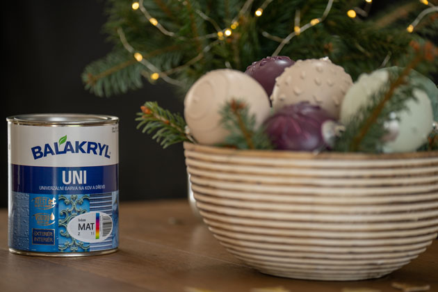 Máte doma staré vánoční ozdoby, které už nejdou ruku v ruce s aktuálními trendy? Nevyhazujte je! Stačí pár triků a stanou se hitem letošních Vánoc! S pestrou škálou odstínů Balakryl UNI z nich vykouzlíte originální kousek, který oživí váš vánoční stromek.