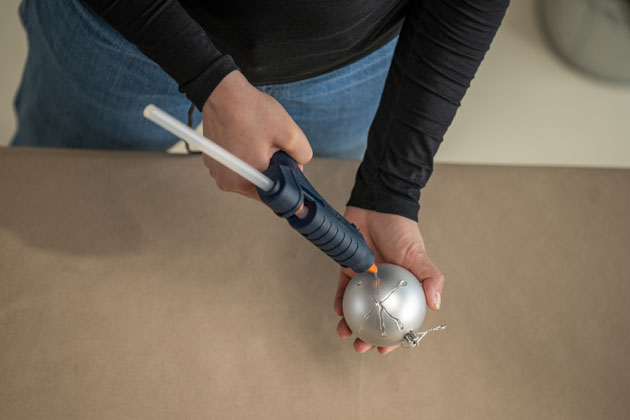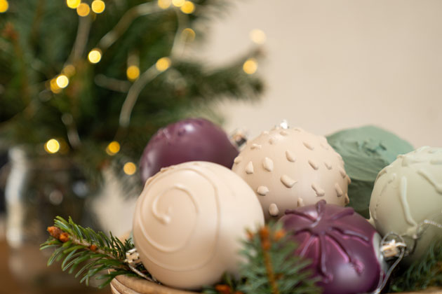 Obyčejné hladké vánoční koule jsou trochu nuda. Z každé z nich přitom jen pomocí lepidla můžete vytvořit jedinečný kousek! Ozdoby nejprve zbavte prachu, mastnoty a dalších nečistot. Na jejich povrchu pak tavnou pistolí vytvořte nejrůznější ornamenty. Můžete se inspirovat tradičními vánočními motivy (např. vločka, hvězda) nebo zvolte abstraktní vzory dle vlastní fantazie.