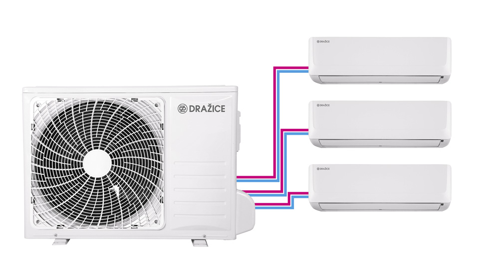 Vyberte si ze sortimentu DZ Dražice jednu z nabízených variant. Split AIR s jednou vnitřní jednotkou pro jednu místnost, nebo Multisplit s více vnitřními jednotkami, která dokáže obsloužit více místností naráz.