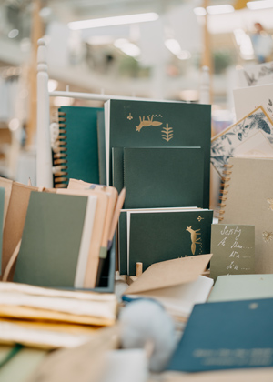 Kromě klasických sešitů, diářů nebo přáníček tu narazíte i na originální washi pásky, samolepky, umělecké tisky, kalendáře, ale i netradiční doplňky pro milovníky ručního psaní.