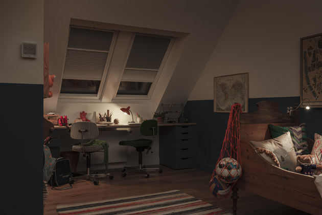 Lehká venkovní roleta VELUX zatemní a vytvoří příjemné klima