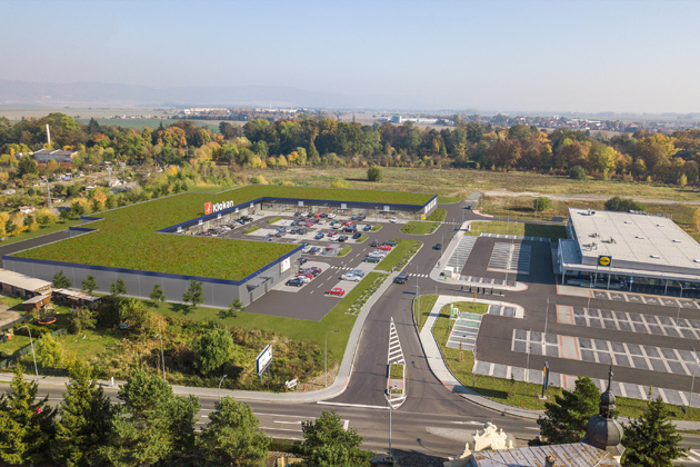 První zelené obchodní centrum Klokan v Humpolci se může pochlubit, že kromě zelené střechy má také další opatření pro zlepšení životního prostředí a kvality života. Ať už to jsou vodouzdržná opatření jako retenční dlažby na parkovacích místech, vytápění prostřednictvím tepelných čerpadel nebo odvedení dešťových vod ze střech do přilehlého rybníka. „Zároveň jsme aplikovali speciální dendrologickou meto- du na záchranu vzrostlých stromů během výstavby, přičemž jsme zachránili skoro všechny vzrostlé dře- viny. Sledujeme světové trendy a komunikujeme také s občanskými sdruženími, které přinášejí inspi- rativní řešení. Potřebujeme jako tak zpomalit oteplování planety a také řešit problém se zadržováním vody. Chceme jít příkladem, dělat investice s takovouto přidanou hodnotou. Ze zákona bychom to ani dělat nemuseli, ale chceme,“ dodal Čačko ze společnosti KLM real estate. Kromě OC Klokan Lipník nad Bečvou nyní společnost připravuje otevření dalších tří zelených obchodních center v lokalitách Úpice, Uničov a Bystřice pod Hostýnem.