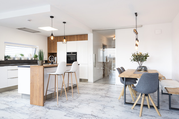 Chcete vytvořit předěl mezi dvěma místnostmi, ale zároveň mezi nimi zanechat vizuální propojení a volný průchod přirozeného denního světla? Elegantní a velmi praktické řešení nabízí prosklené stěny. „Maximální zachování vzdušnosti a přístupu světla nabízí interiéru prosklené stěny, které prostor opticky rozdělí, ale zároveň mezi nimi nechají vizuální propojení. Můžete si přitom vybrat variantu fixní příčky bez průchodu, nebo skleněné stěny s otočnými, posuvnými nebo kyvnými dveřmi a to v jednokřídlém i dvoukřídlém provedení,“ vyjmenovává Ing. Milena Tomčíková, ředitelka vývoje a produktů společnosti VEKRA. Sklo navíc nabízí nepřeberné možnosti vizuálního pojetí – od čirého provedení, přes matné až po prvky s designovým vzorem nebo individuálním dekorem podle vlastního návrhu. Výhodou navíc je, že celoskleněné příčky lze zpravidla do interiéru instalovat i dodatečně. Nezapomeňte ale vzít v úvahu přístupovou cestu na místo instalace a manipulaci uvnitř domu. Prosklené stěny obvykle bývají velkých rozměrů, proto pokud jsou v interiéru úzké chodby nebo schodiště, může být komplikované, jak je dostat na místo. Proto je třeba vybrat spolehlivého dodavatele, který se postará nejen o návrh vhodného řešení na míru, ale postará se i o bezproblémovou realizaci.