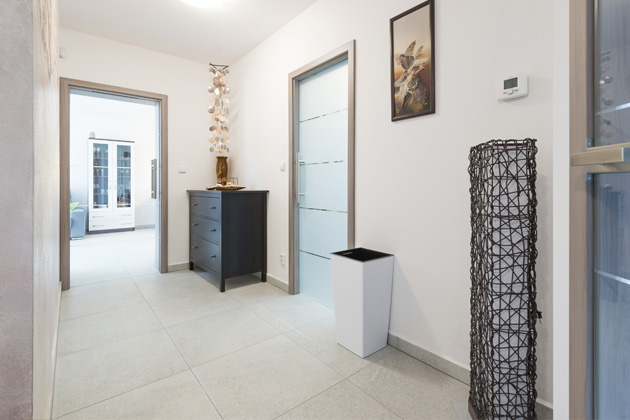 Pěkně prosvětlit interiér zvládnou i samotné skleněné dveře. I ty totiž umožní světlu proudit mezi jednotlivými místnostmi. Tam, kde byste raději zachovali intimní prostředí, jako je ložnice či koupelna, zvolte raději provedení z neprůhledného skla. Na rozdíl od těch čirých propustí světlo, ale obraz už nikoliv. O jejich rozbití se navíc bát nemusíte. „Pro výrobu celoskleněných dveří VEKRA Interier Glass používáme speciální tvrzené sklo, které je na ploše při běžném provozu v domácnosti prakticky nerozbitné. Pokud by k jeho rozbití přece jen došlo, sklo netvoří ostré střepiny,“ vysvětluje Ing Milena Tomčíková z VEKRY. Kromě běžného čirého a matného provedení jsou dostupné také v široké nabídce ornamentálních skel či s možností vytváření vzorů podle vlastního návrhu.