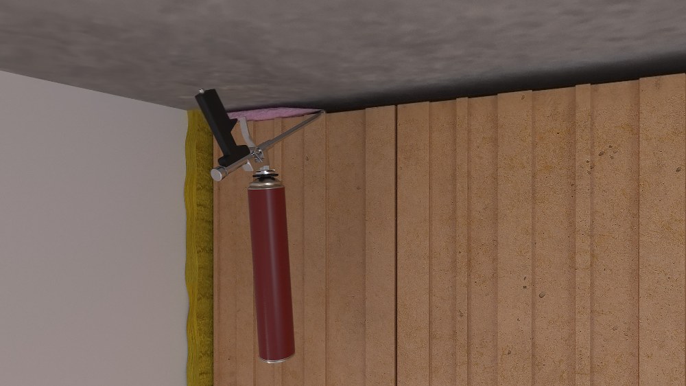 Vyzdí se stěna až ke stropu. Mezi stropem a stěnou se ponechá mezera vysoká přibližně 20 mm. Spára mezi stropem a zdivem se vyplní protipožární PU pěnou TYTAN B1 (červeno-černá kartuše). Tloušťka spáry může být max. 20 mm.