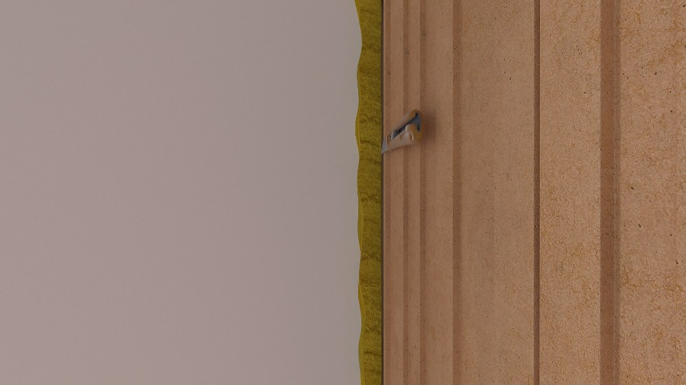 Na ostění stávajících stěn se připevní tuhá minerální vlna tloušťky 20 mm a šířky cca 22 cm, a to např. pomocí PU pěny HELUZ.