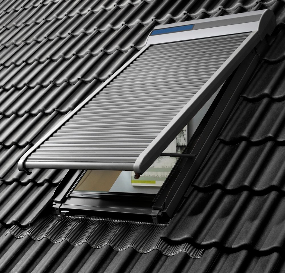 Loňská novinka lehká venkovní roleta na solární pohon VELUX SSS v sobě spojuje schopnost udržet v interiéru chladnější klima i účinně ho zatemnit. Je vyrobena z pevné polyesterové tkaniny potažené PVC a vyztužené hliníkovými lamelami. Tkanina nepropouští světlo, je odolná vůči UV záření a nepodléhá degradaci materiálu.